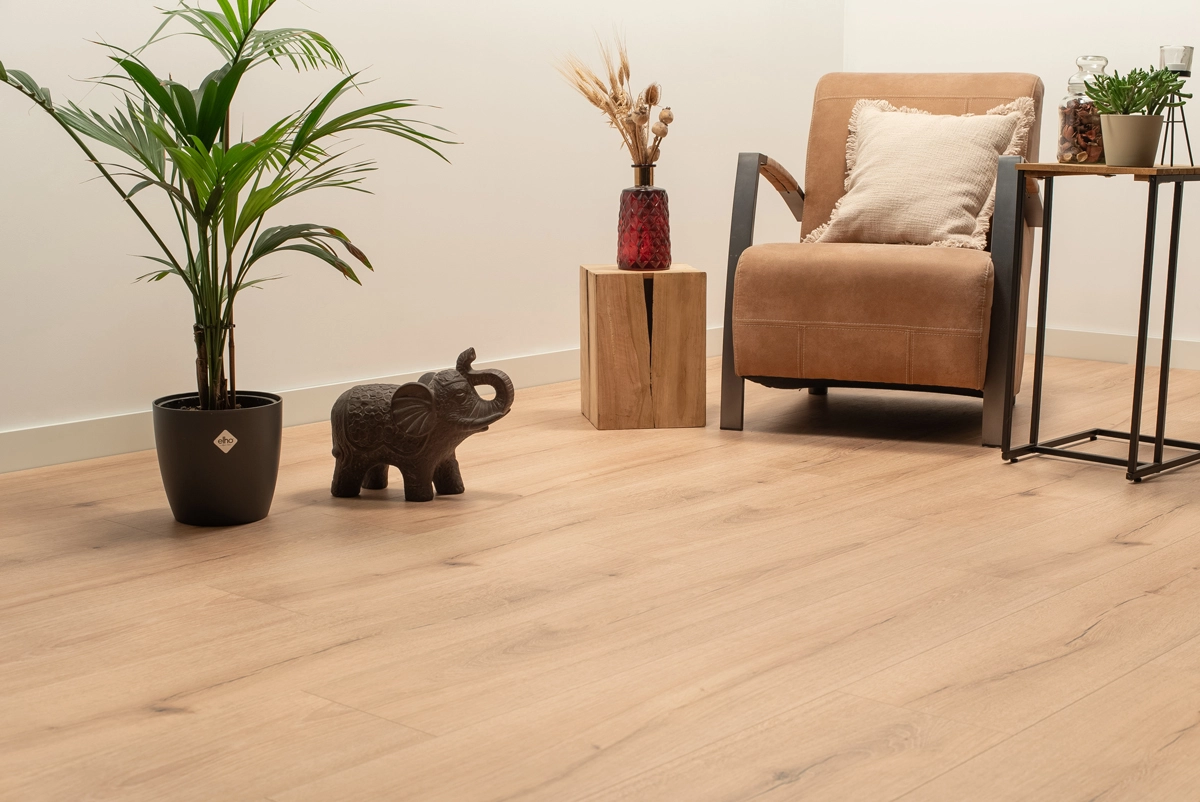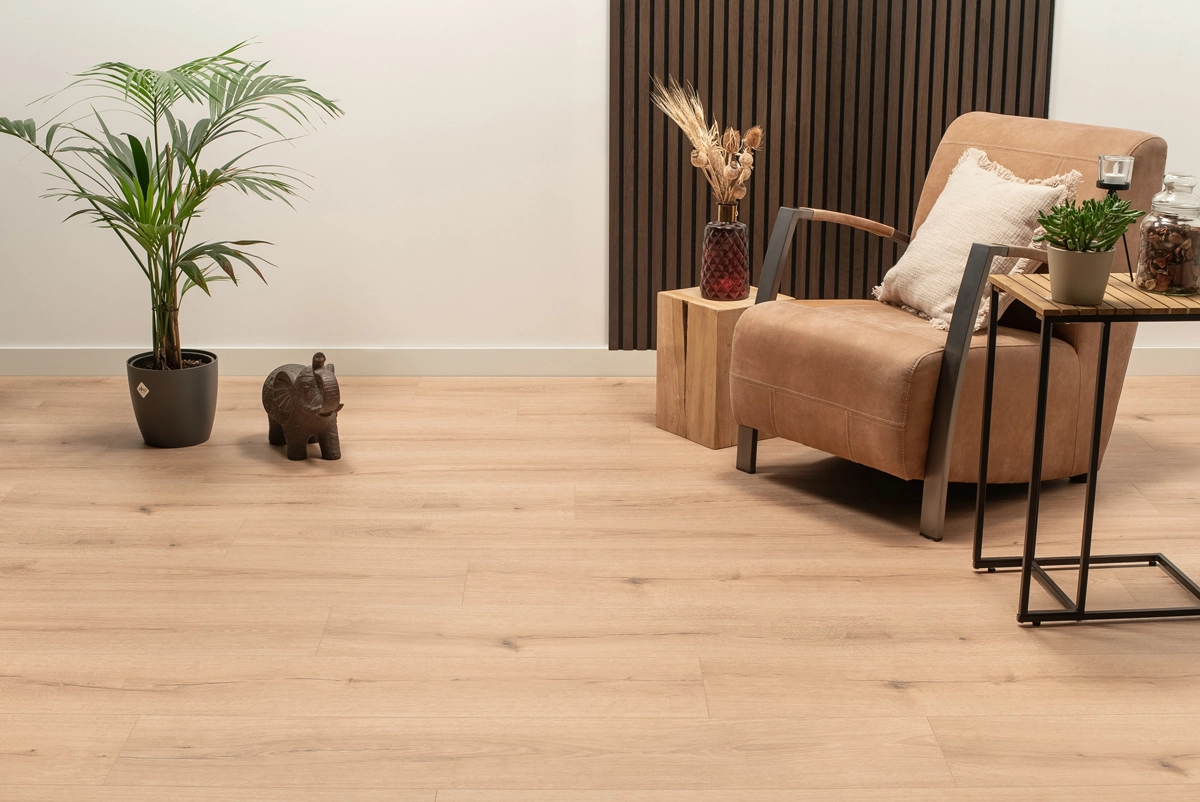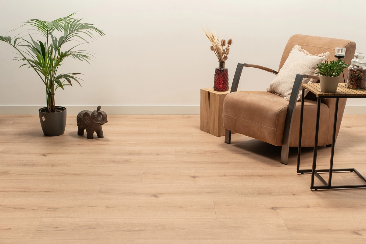 De Steden Bergamo Bruin Eiken van Floer is een hybride laminaatvloer die het beste van robuustheid en uitstraling biedt. De solide constructie voelt stevig onder de voeten, terwijl de warme toon mooi aansluit bij natuurlijke materialen, zachte stoffen en uiteenlopende woonstijlen. Of je nu kiest voor een klassiek interieur of een modern geheel, deze vloer voelt zich overal thuis.