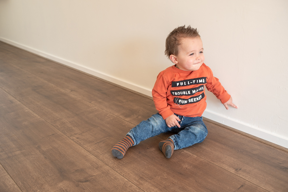 De 32 cm brede vloerplanken hebben een sfeervol eiken design en zijn geschikt voor het leggen op een vloerverwarming! De Landhuis planken hebben een luxe V-groef aan de lange zijde die het extra brede formaat nog eens benadrukt. Daarnaast is de collectie waterproof, ook in de groef. De groeven hebben een speciale ‘watervast’ coating gekregen waardoor de Floer tot 4 uur waterbestendig is.