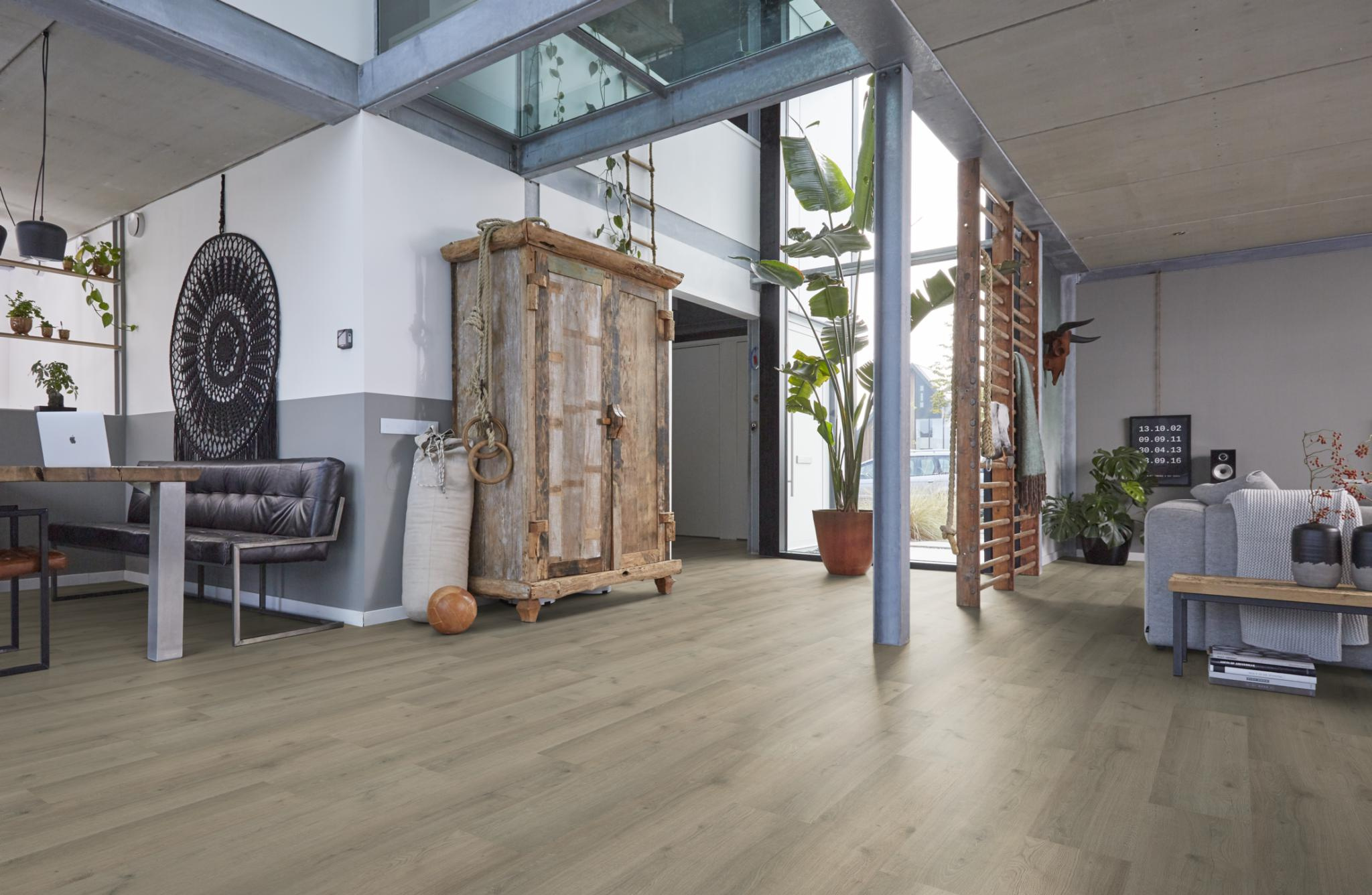 De Forest Hills grijsbeige eiken van Floorlife past perfect in interieurs waar rust en eenvoud centraal staan. De kleur laat ruimtes groter en opener aanvoelen en vormt een mooie basis voor verschillende woonstijlen. Van modern en Scandinavisch tot tijdloos en warm: deze vloer sluit er moeiteloos op aan.