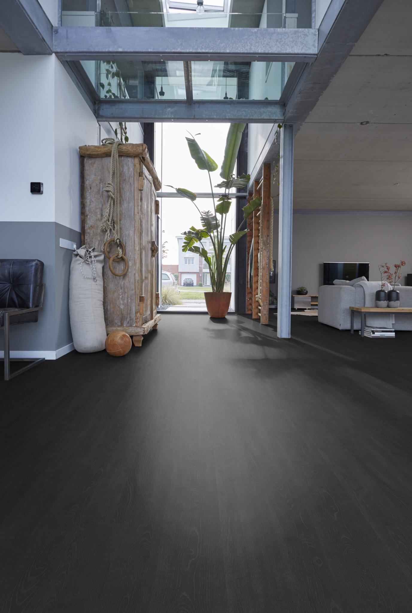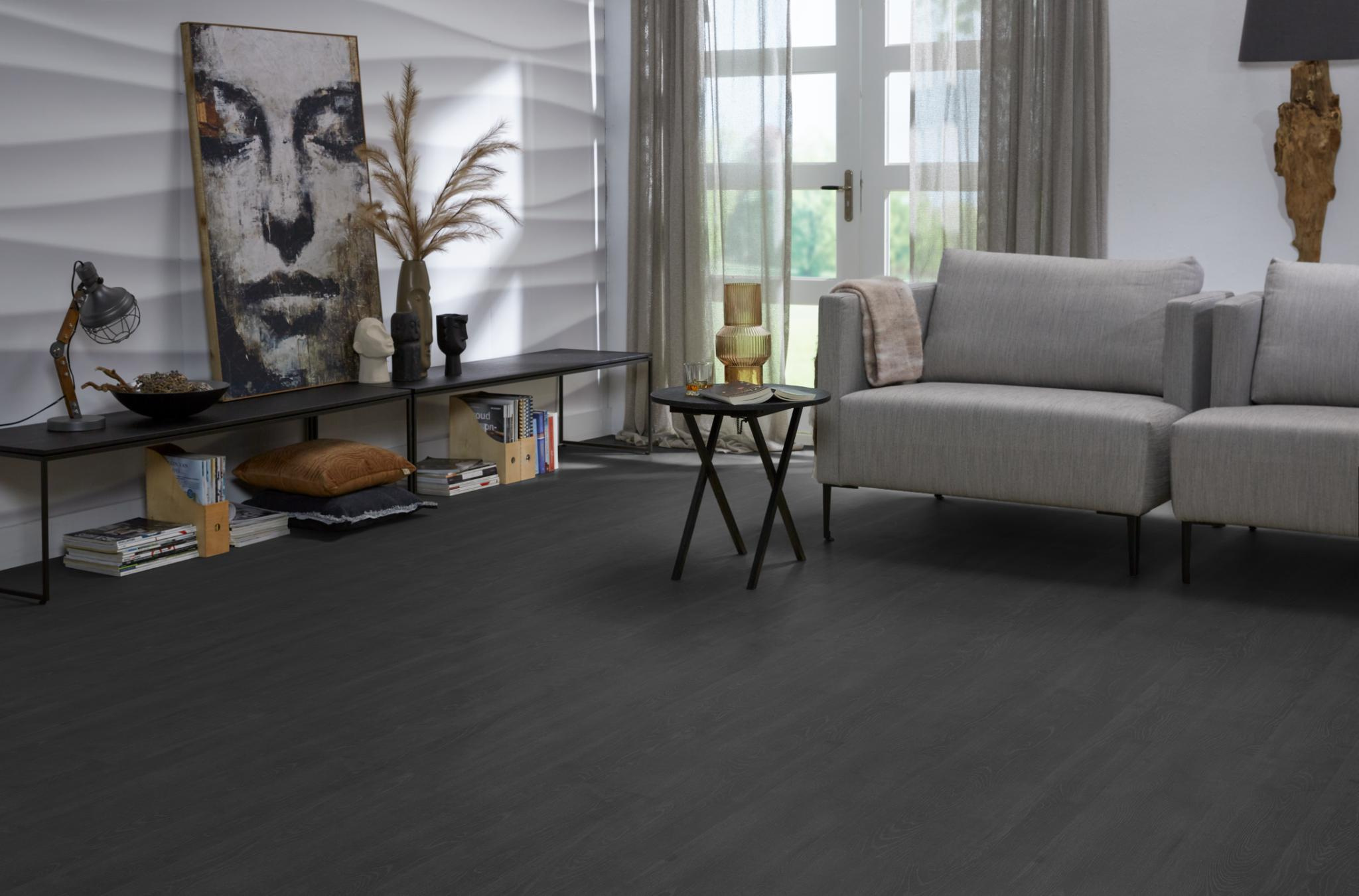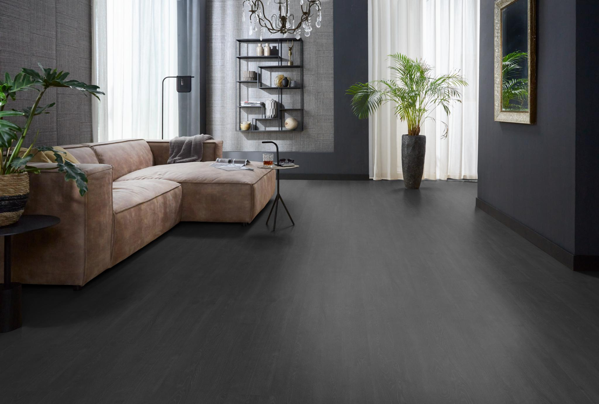 De Forest Hills zwart eiken van Floorlife is perfect voor wie een statement wil maken met de vloer. De donkere kleur geeft diepte aan de ruimte en laat meubels, kunst en accessoires extra sterk naar voren komen. Vooral in combinatie met lichte wanden en natuurlijke materialen ontstaat er een krachtig en stijlvol geheel.