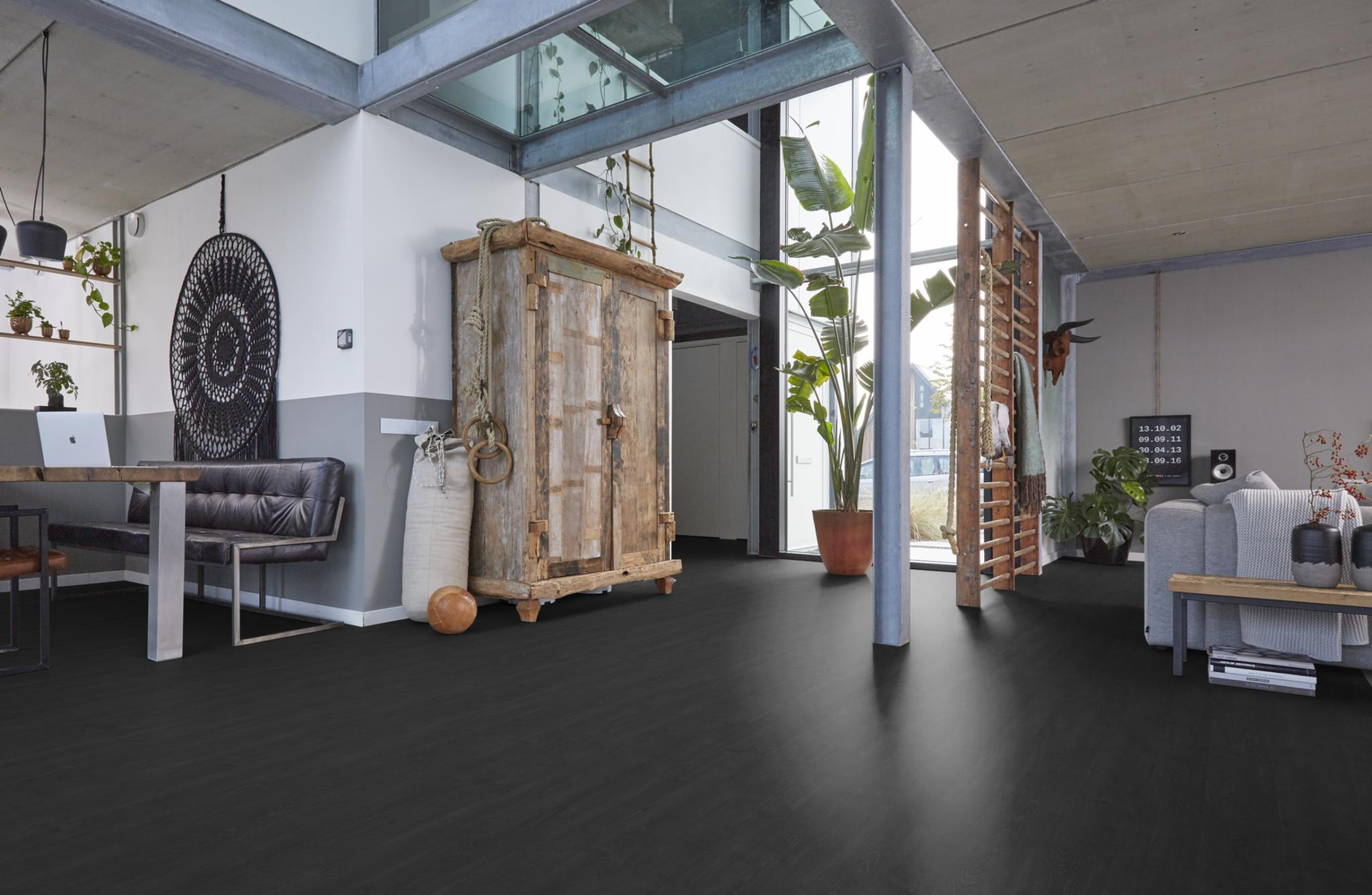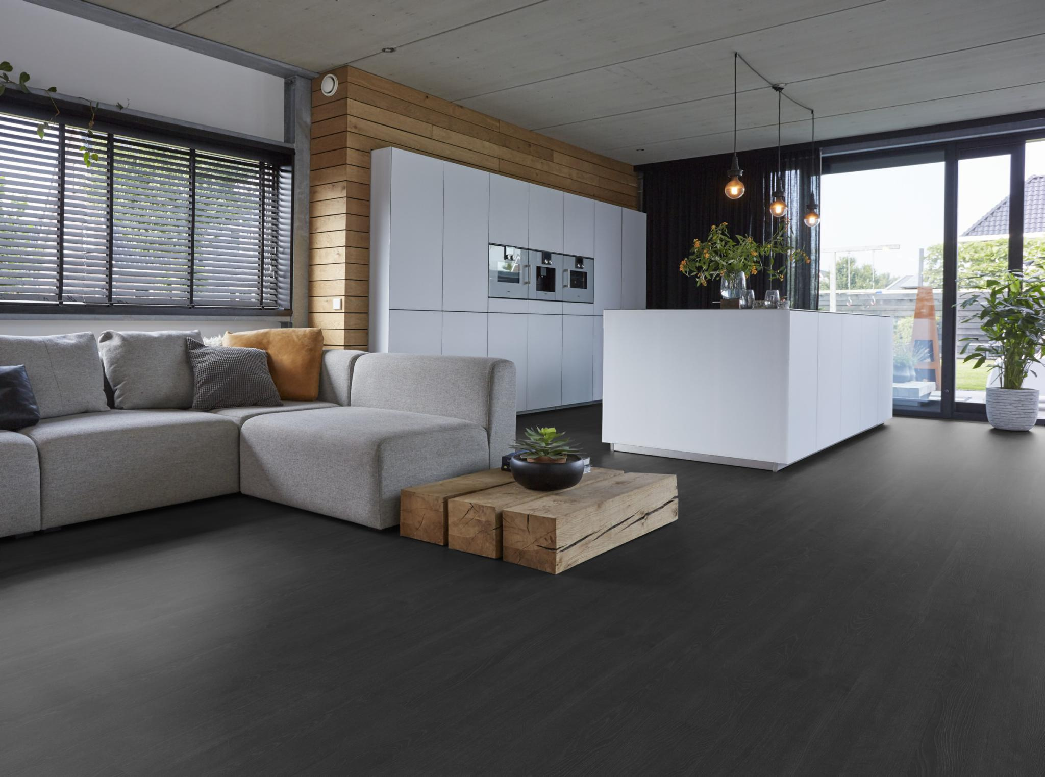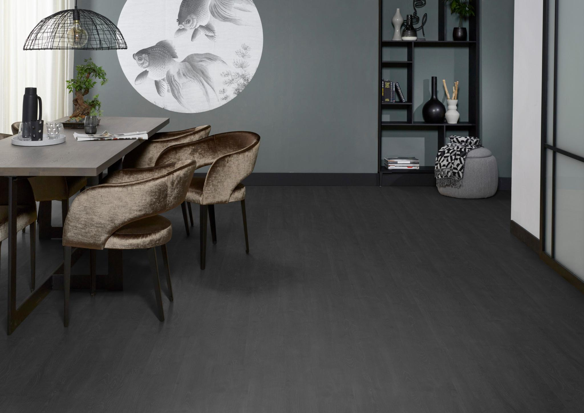 De Forest Hills zwart eiken van Floorlife is perfect voor wie een statement wil maken met de vloer. De donkere kleur geeft diepte aan de ruimte en laat meubels, kunst en accessoires extra sterk naar voren komen. Vooral in combinatie met lichte wanden en natuurlijke materialen ontstaat er een krachtig en stijlvol geheel.