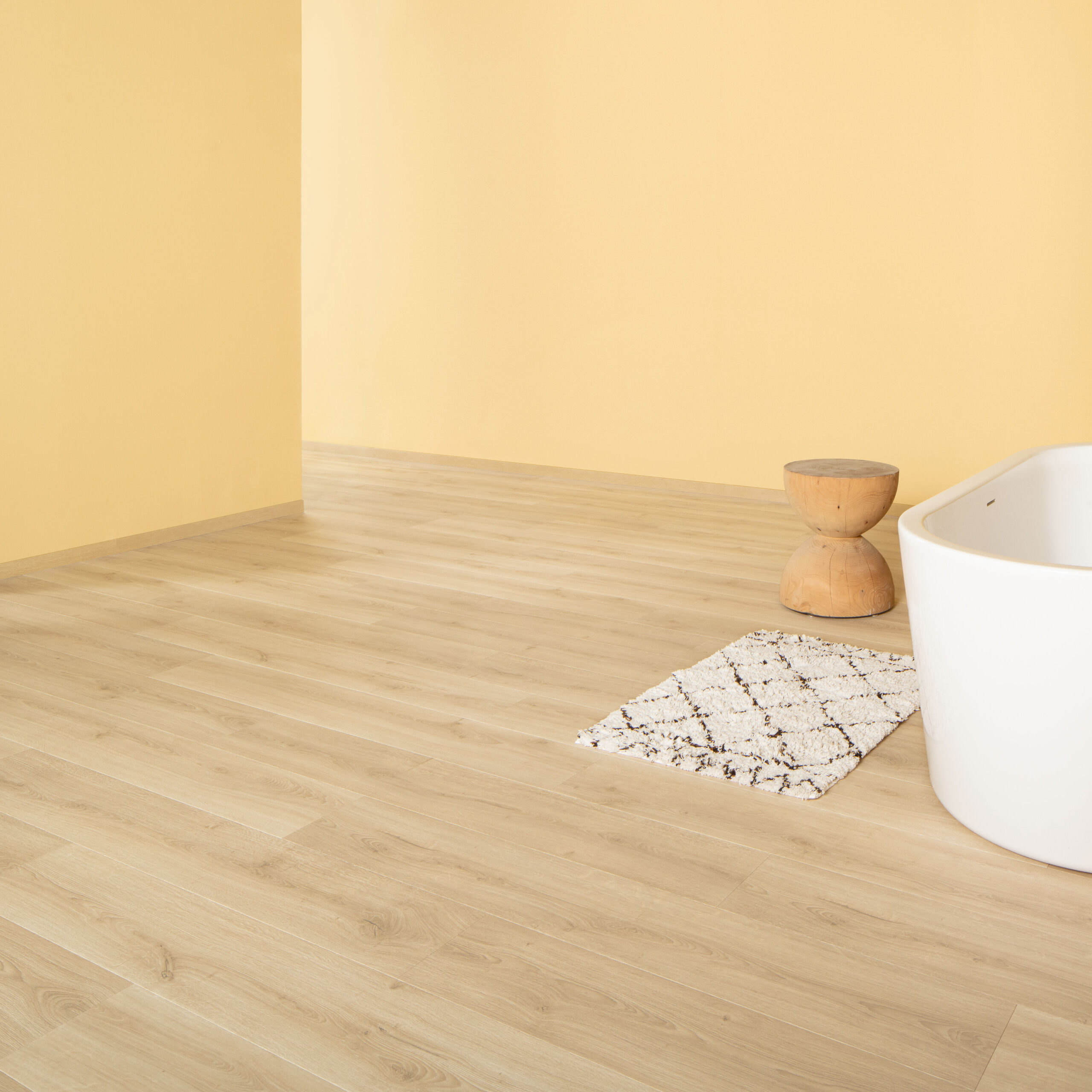 Daarnaast is de vloer waterbestendig, waardoor hij ook geschikt is voor bijvoorbeeld de keuken. Uiteraard is hij te combineren met vloerverwarming, mits gelegd met een geschikte ondervloer.