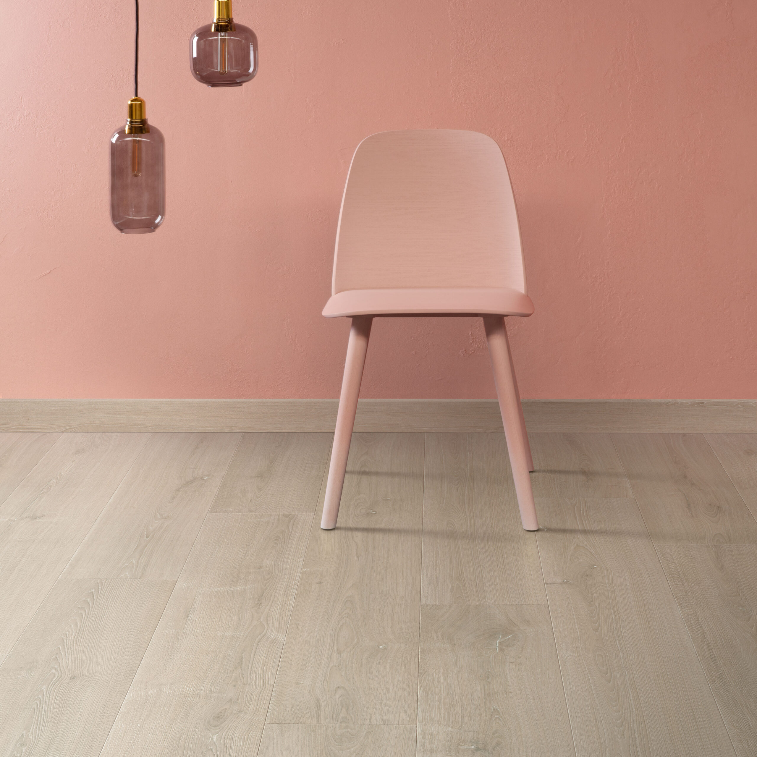 De kleur Geborstelde Beige Eik heeft een zachte, warme beige ondertoon met een natuurlijke houttekening. Dit maakt de vloer bijzonder geschikt voor interieurs waarin lichte aardetinten en rustige kleuren centraal staan.