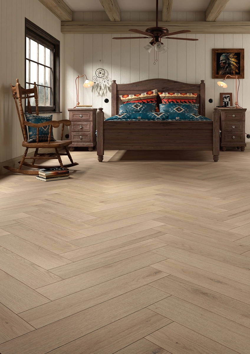 De visgraatstructuur zorgt voor een luxe en levendig beeld in de ruimte. Door de variatie in kleur en houtstructuur oogt de vloer warm en stijlvol. Visgraat laminaat past daardoor zowel in moderne interieurs als in meer klassieke woonstijlen.