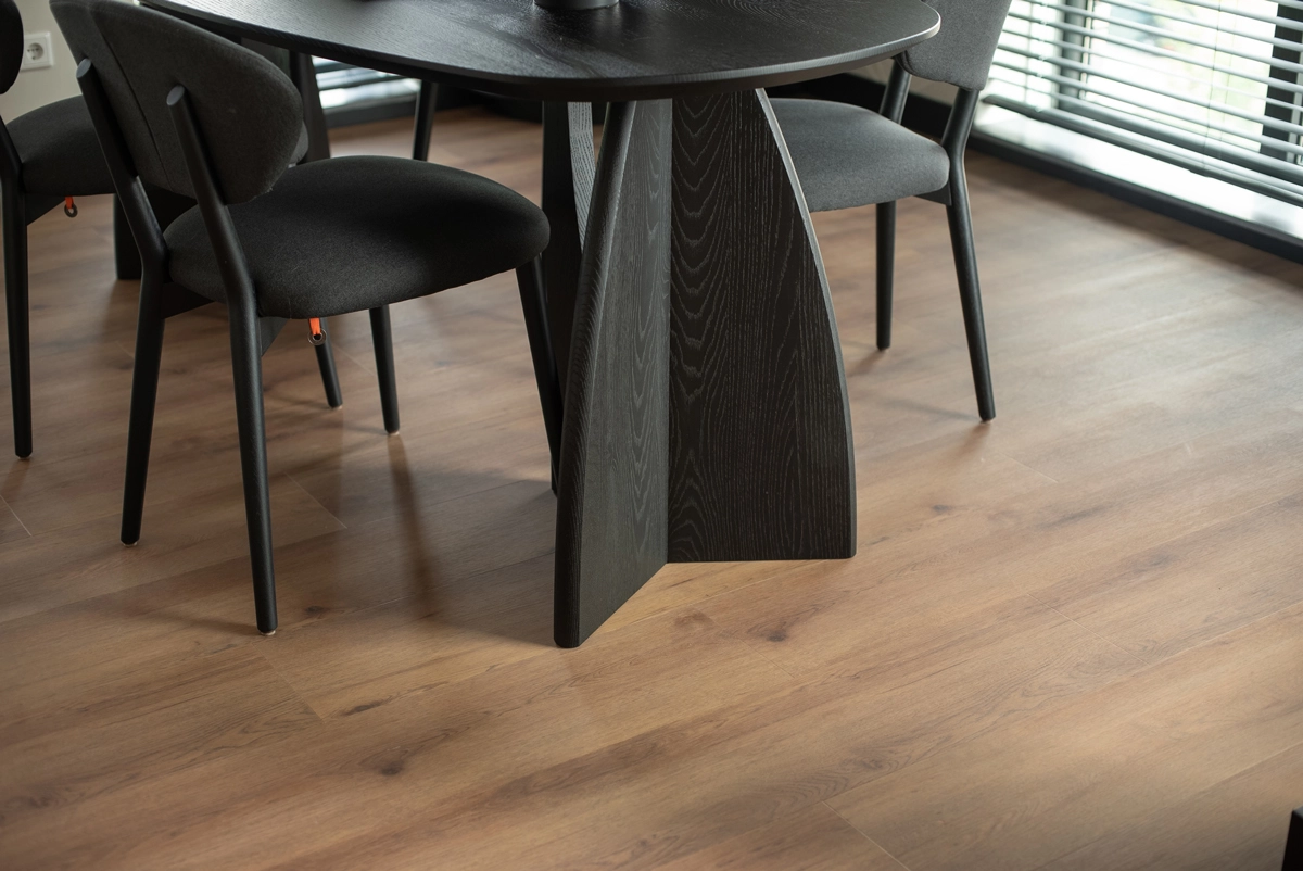 De click-constructie maakt het leggen van de vloer eenvoudig en zorgt voor een strak, solide resultaat.