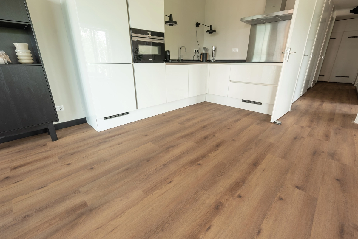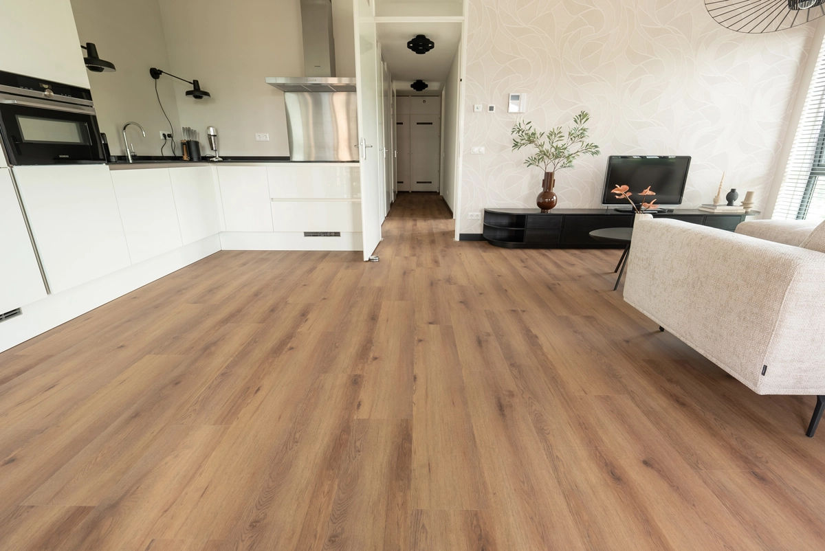 De Natuur Click PVC Niederhorn Nootbruin van Floer combineert de warme uitstraling van echt hout met het gebruiksgemak van een clickvloer. De rijke tint past prachtig bij natuurlijke materialen, zachte texturen en zowel moderne als klassieke meubels. Daardoor voelt je interieur direct samenhangend en sfeervol aan.