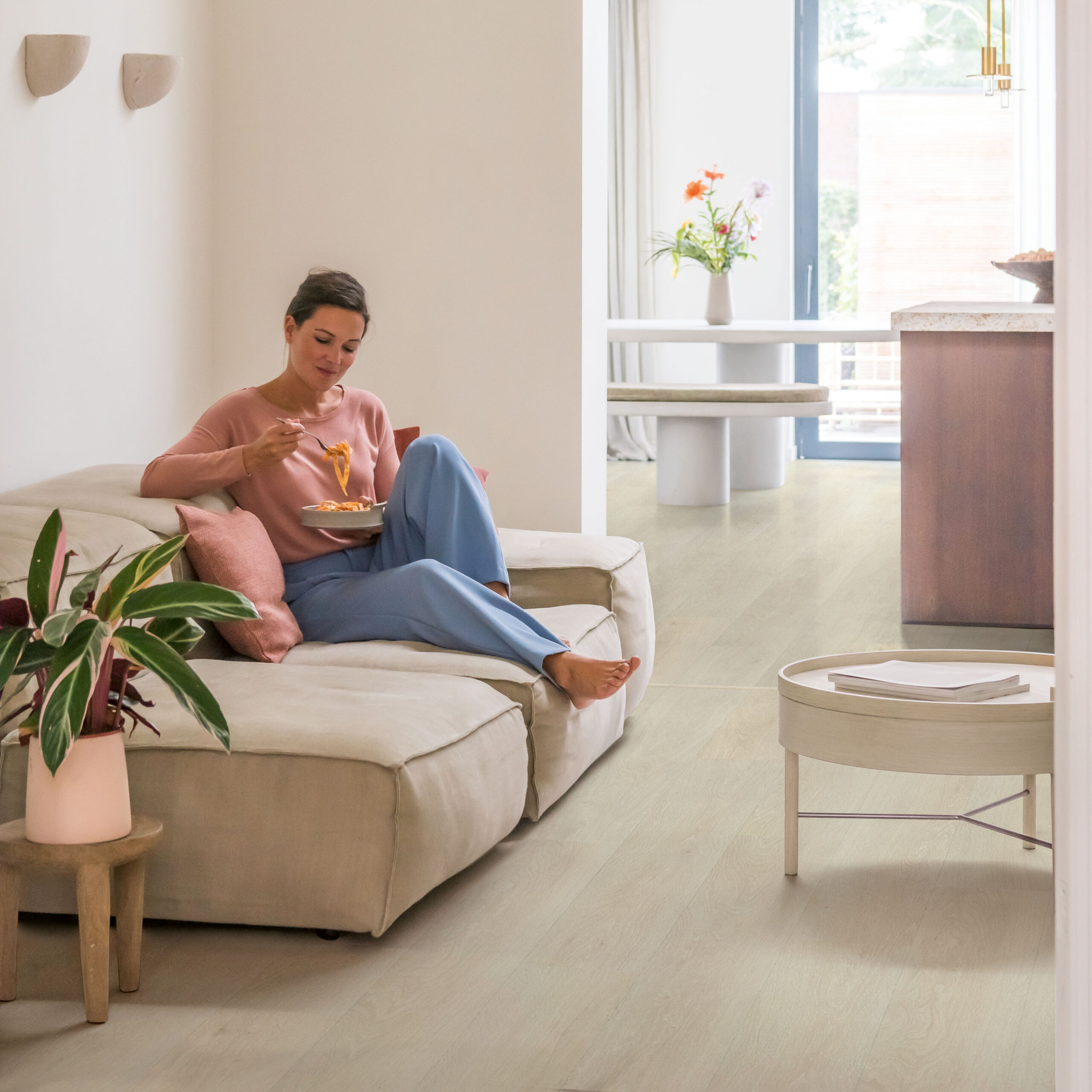 De Bloom AVMPU40079 Zeebries lichte eik van Quick-Step is ontworpen voor wie houdt van een lichte en uitnodigende sfeer, zonder in te leveren op kwaliteit. De zachte, frisse tint laat zich uitstekend combineren met lichte meubels, natuurlijke materialen en een breed scala aan woonstijlen. Zo ontstaat een harmonieuze en verzorgde woonruimte.