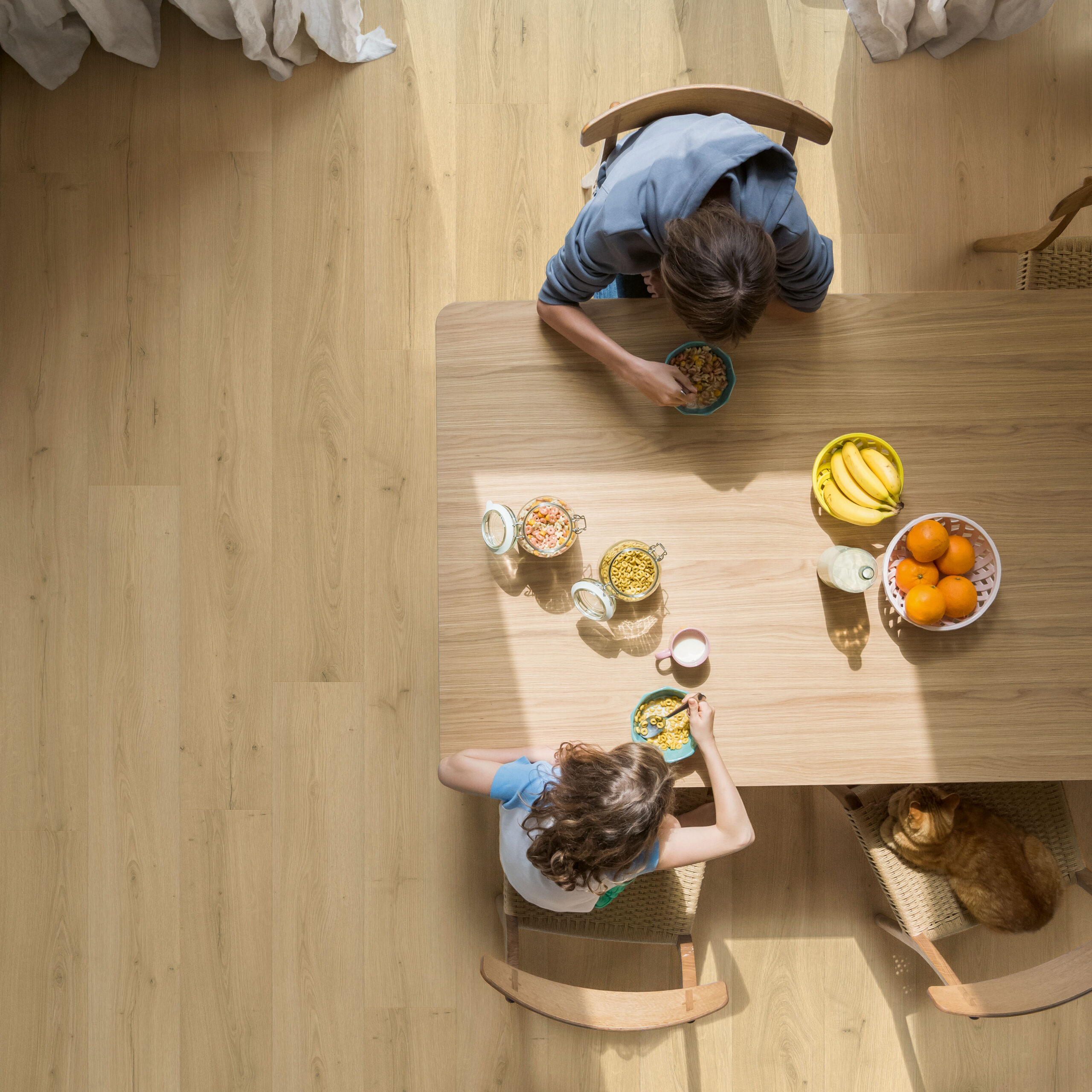 De Quick-Step Bloom Geborstelde beige eik is ook geschikt voor vloerverwarming en draagt bij aan een aangename akoestiek, wat bijdraagt aan extra wooncomfort.