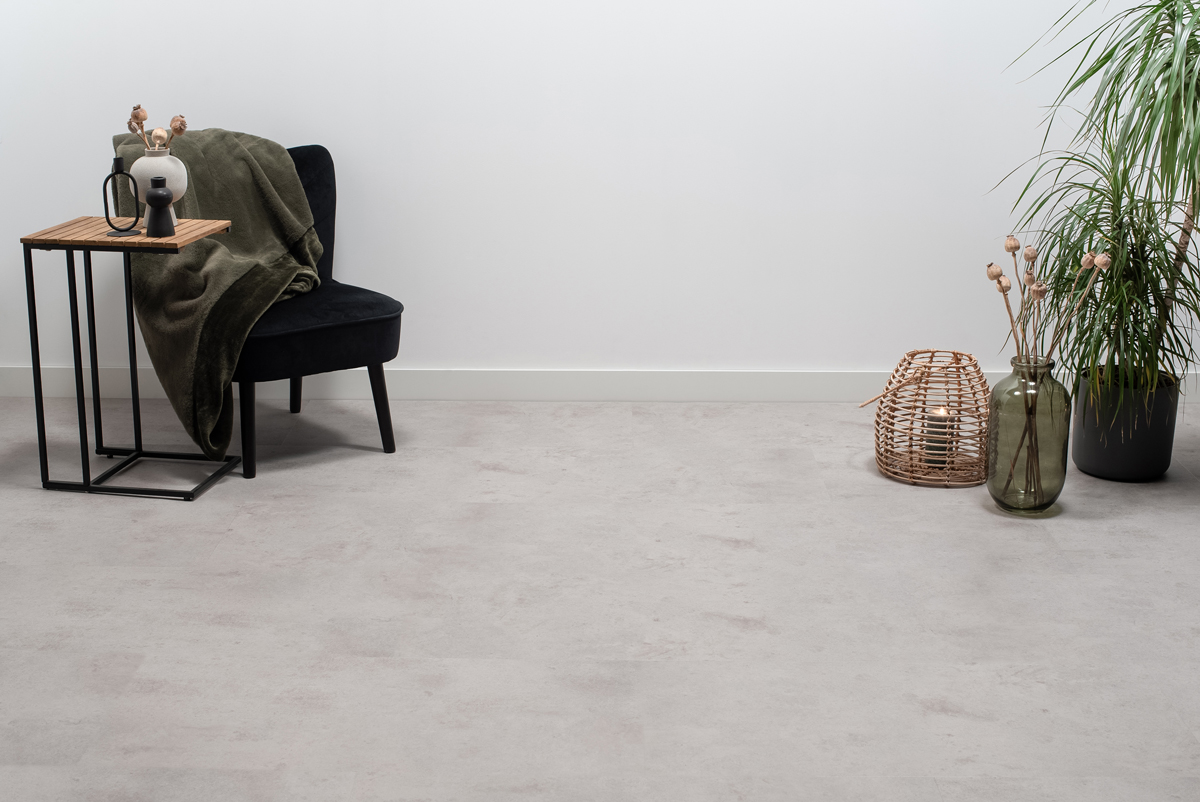 Wat Tegel Click PVC aantrekkelijk maakt, is de uitstraling. De meeste tegels hebben een rustige beton- of steenlook met een matte afwerking. Hierdoor oogt de vloer strak en modern, zonder kil te worden. Dat maakt deze vloer geschikt voor verschillende woonstijlen, van industrieel tot minimalistisch.