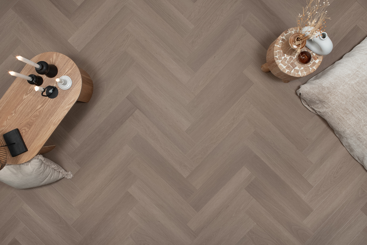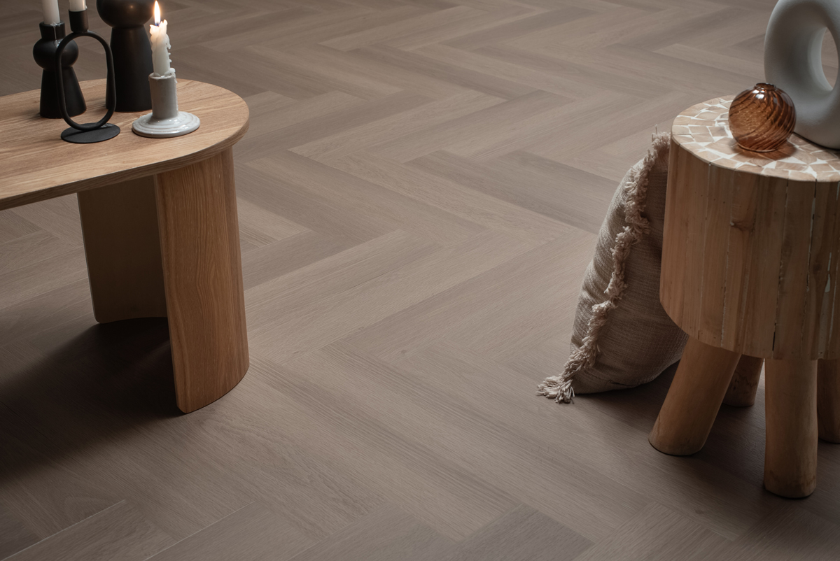 De Visgraat Click PVC Greige Eiken van Floer combineert een klassiek visgraatmotief met het gemak van een clickvloer. Het visgraatpatroon geeft de ruimte een verfijnde en tijdloze uitstraling, terwijl de greige tint precies die moderne, zachte basis biedt waar veel interieurs naar verlangen.