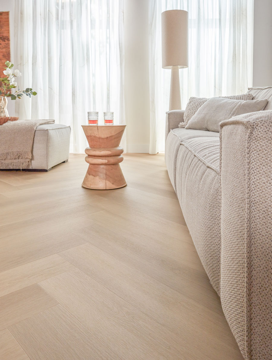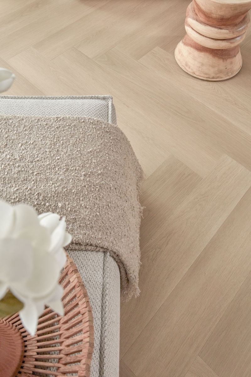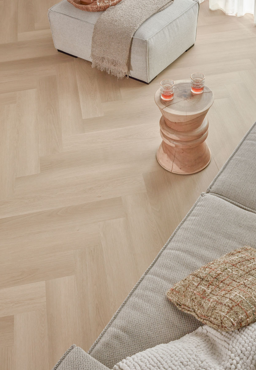De Zwaardvis Zand walvisgraat van Floer is ideaal voor wie houdt van een rustige woonstijl met een natuurlijke uitstraling. Het walvisgraatpatroon brengt structuur en een ruimtelijk effect, terwijl de lichte zandtint moeiteloos combineert met verschillende kleuren en materialen.