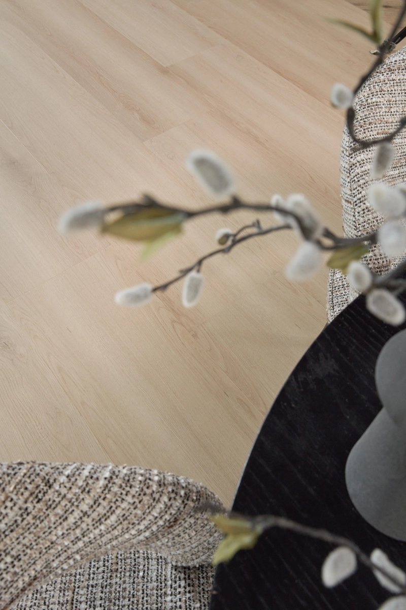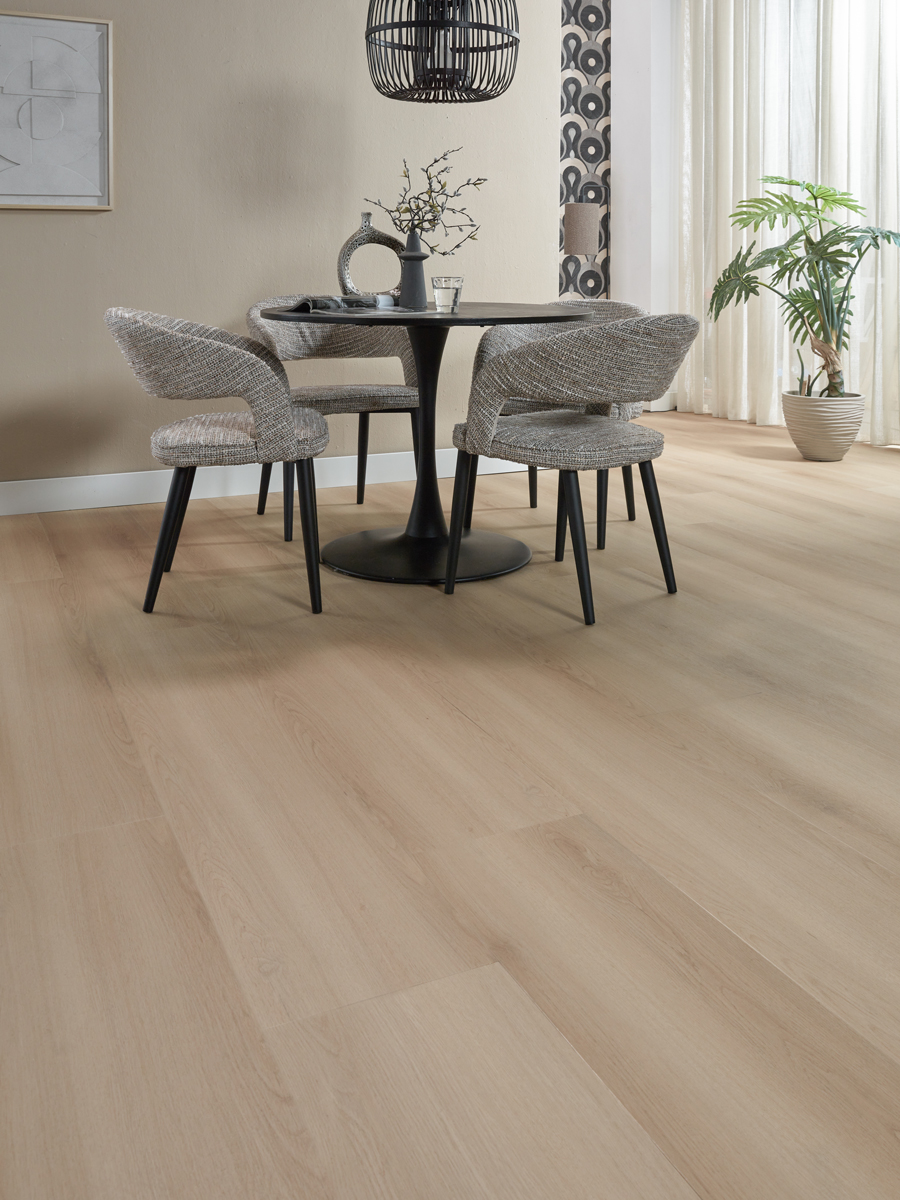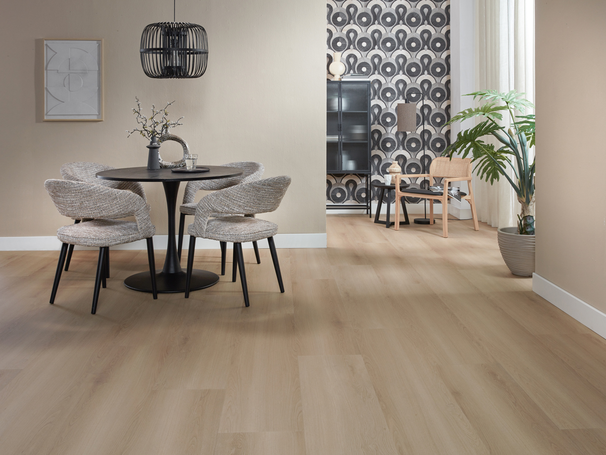 De Floer Landhuis PVC – Lichtbruine Eik is eenvoudig in onderhoud. Regelmatig stofzuigen en licht dweilen is voldoende om de vloer mooi te houden. Geen schuren of lakken nodig, wél jarenlang woonplezier.