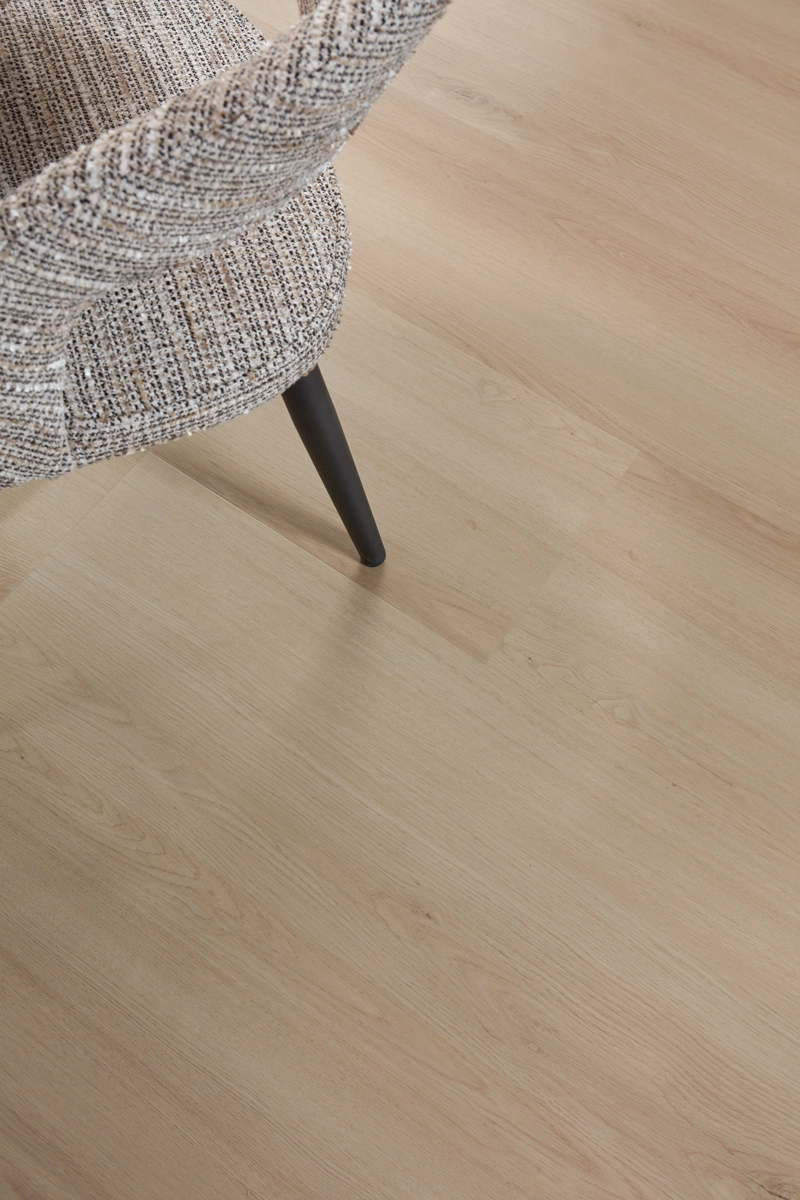 De kleur Lichtbruine Eik heeft een warme, toegankelijke houttint met een subtiele nerfstructuur. De matte afwerking en realistische embossing geven de vloer de uitstraling van echt eikenhout, terwijl je profiteert van de praktische voordelen van PVC.