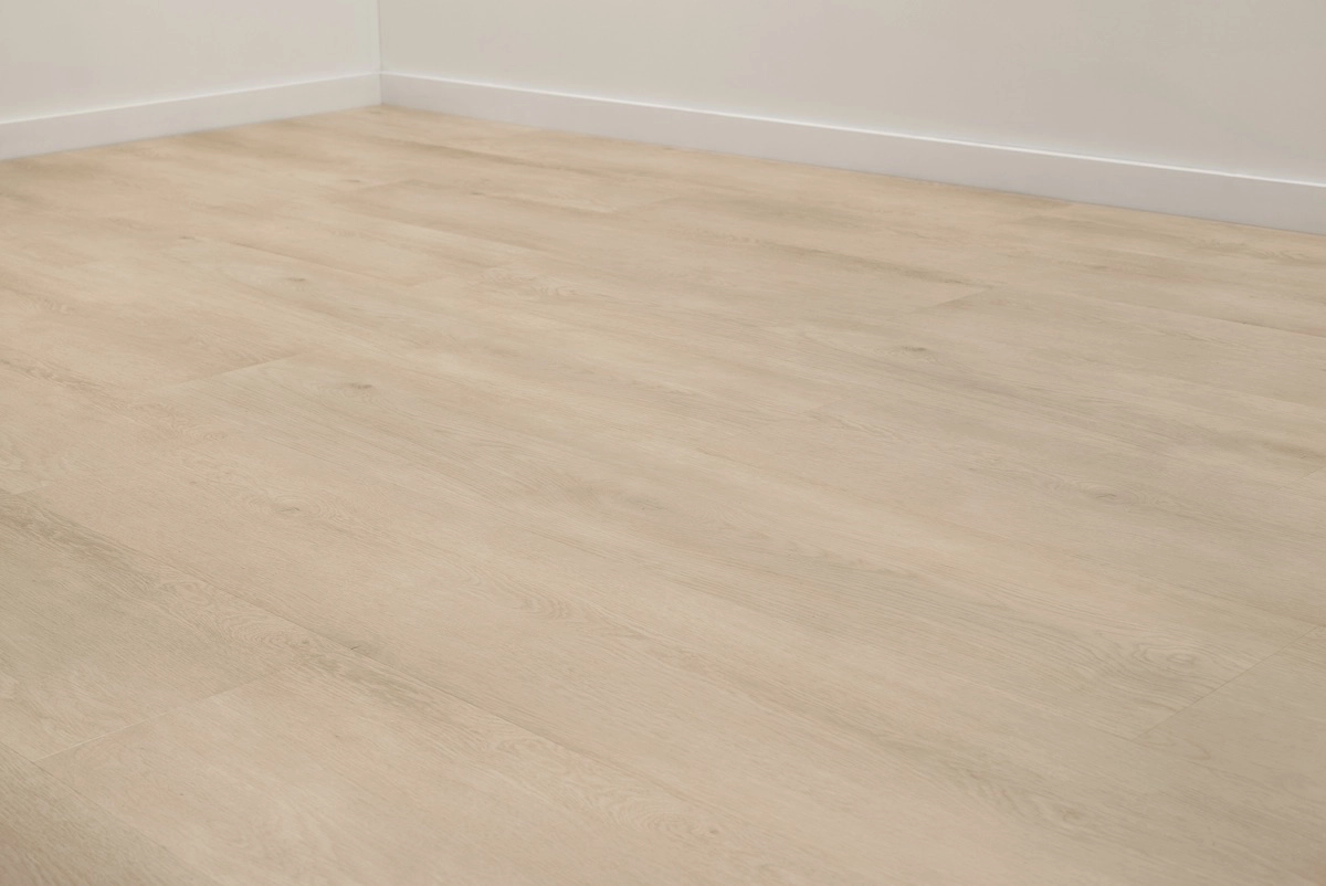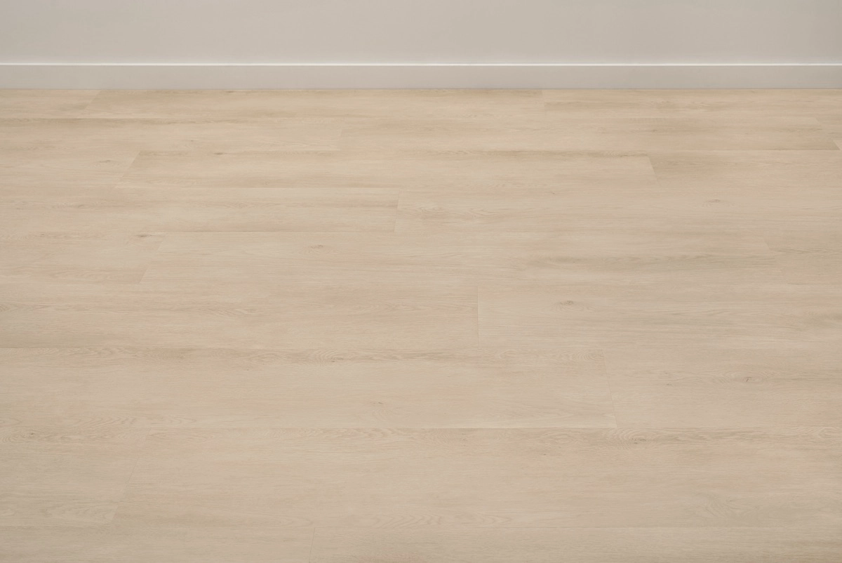 De kleur Pure Eik heeft een neutrale, natuurlijke houttint zonder sterke ondertonen. De matte afwerking en realistische houtstructuur geven de vloer een authentieke uitstraling die nauwelijks van echt eiken te onderscheiden is.