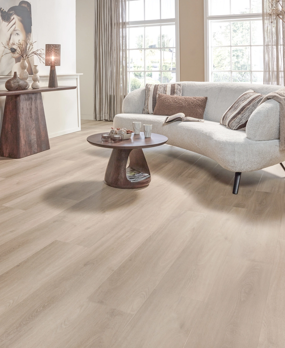 De Natuur PVC Callantsoog Crèmewit van Floer is ontworpen voor wie houdt van een lichte, frisse sfeer in huis zonder in te leveren op karakter. De zachte crèmewitte eikenlook past perfect bij lichte meubels, natuurlijke materialen en zachte stoffen, waardoor je interieur open, vriendelijk en harmonieus aanvoelt.