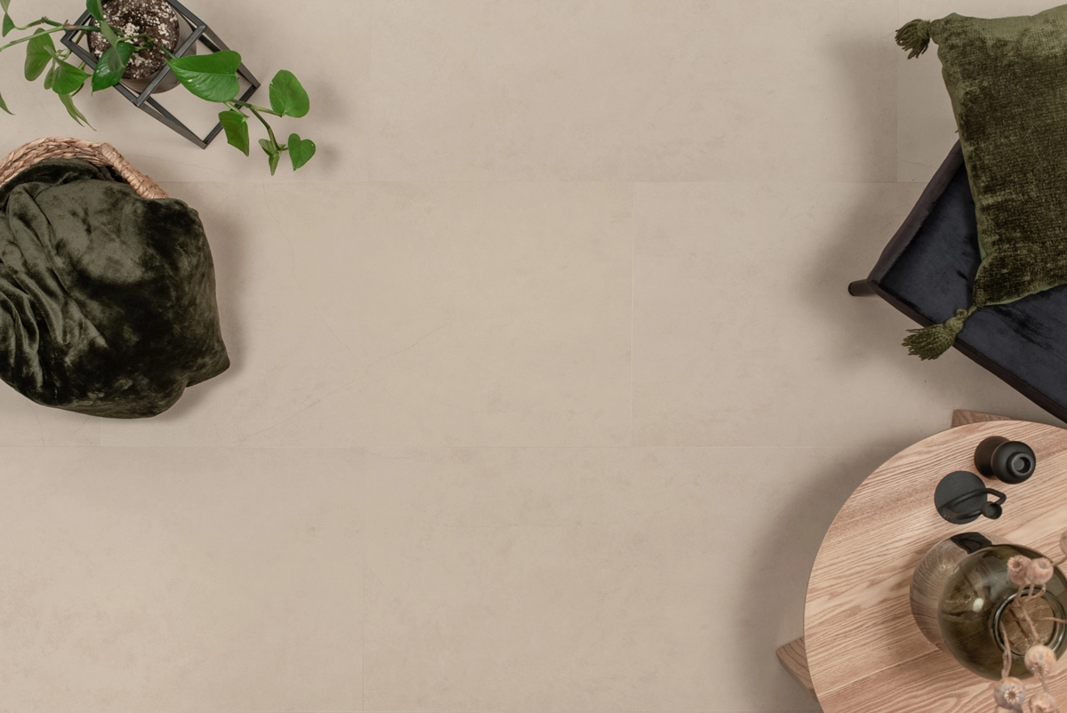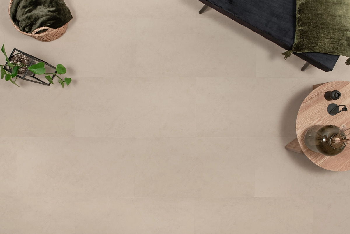 Deze vloer laat zich prachtig combineren met hout, zachte stoffen en natuurlijke materialen. Zo ontstaat een harmonieus interieur waarin comfort en design samenkomen.