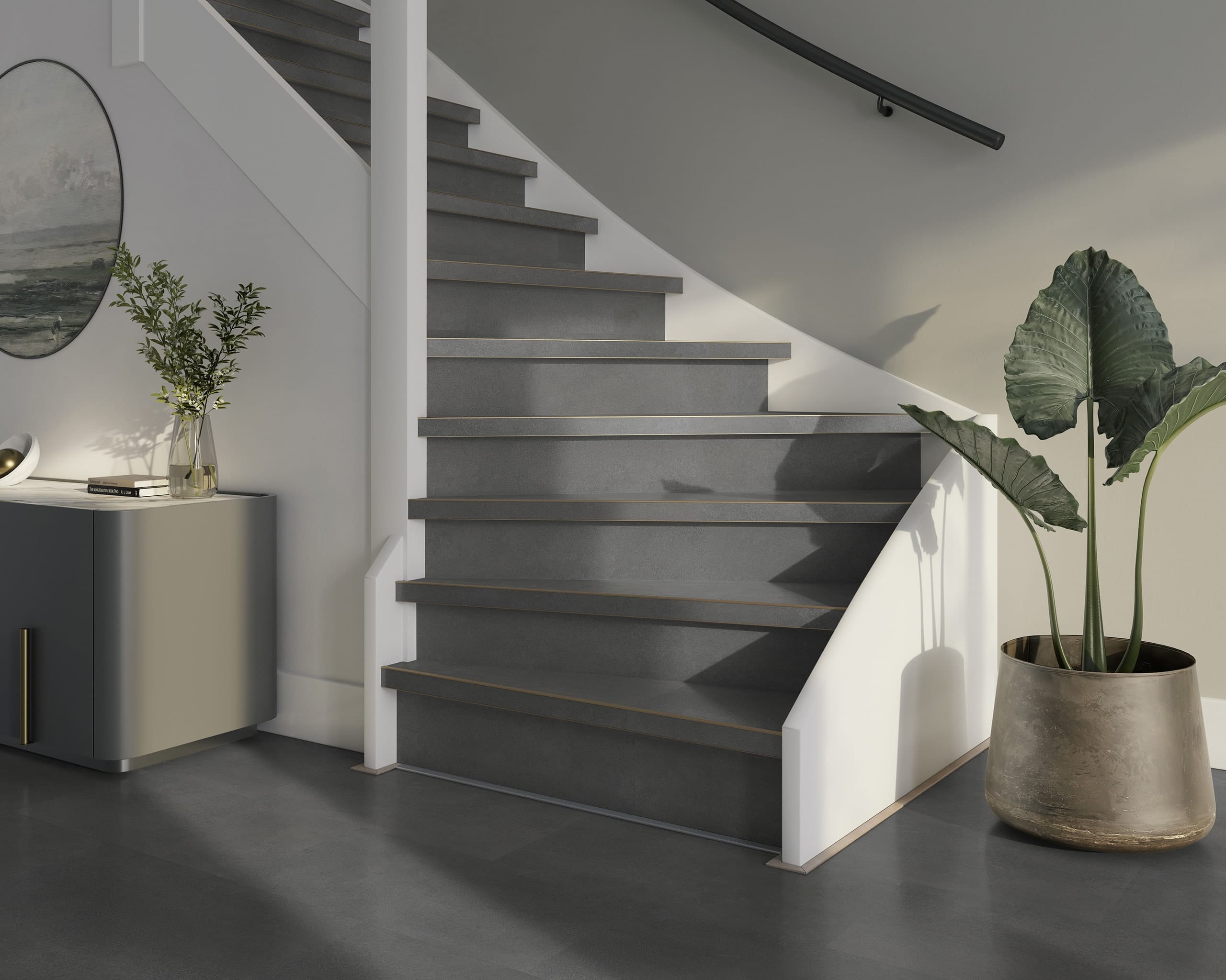 De Lijm PVC Tegel 1910 van Vivafloors combineert de uitstraling van een echte tegelvloer met het comfort van PVC. Je krijgt de strakke look van beton of steen, maar dan met een stillere, warmere ondergrond. De tegelvorm geeft je interieur een rustige structuur en laat grotere oppervlakken optisch nog beter tot hun recht komen.