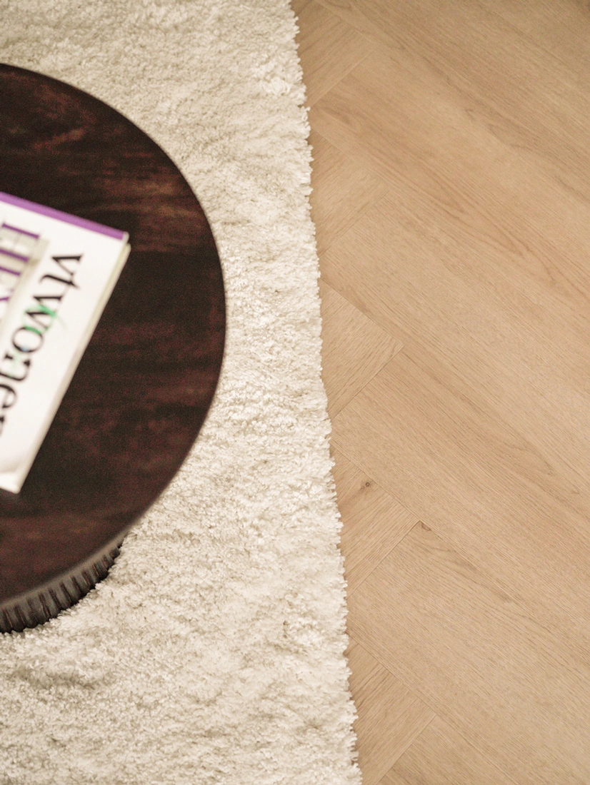 De Bryde Bruin walvisgraat van Floer is een mooie keuze voor wie houdt van een robuuste uitstraling met een luxe twist. Het walvisgraatpatroon geeft de ruimte een ruimtelijk effect en laat kamers groter aanvoelen, terwijl de warme kleur zorgt voor balans en gezelligheid.