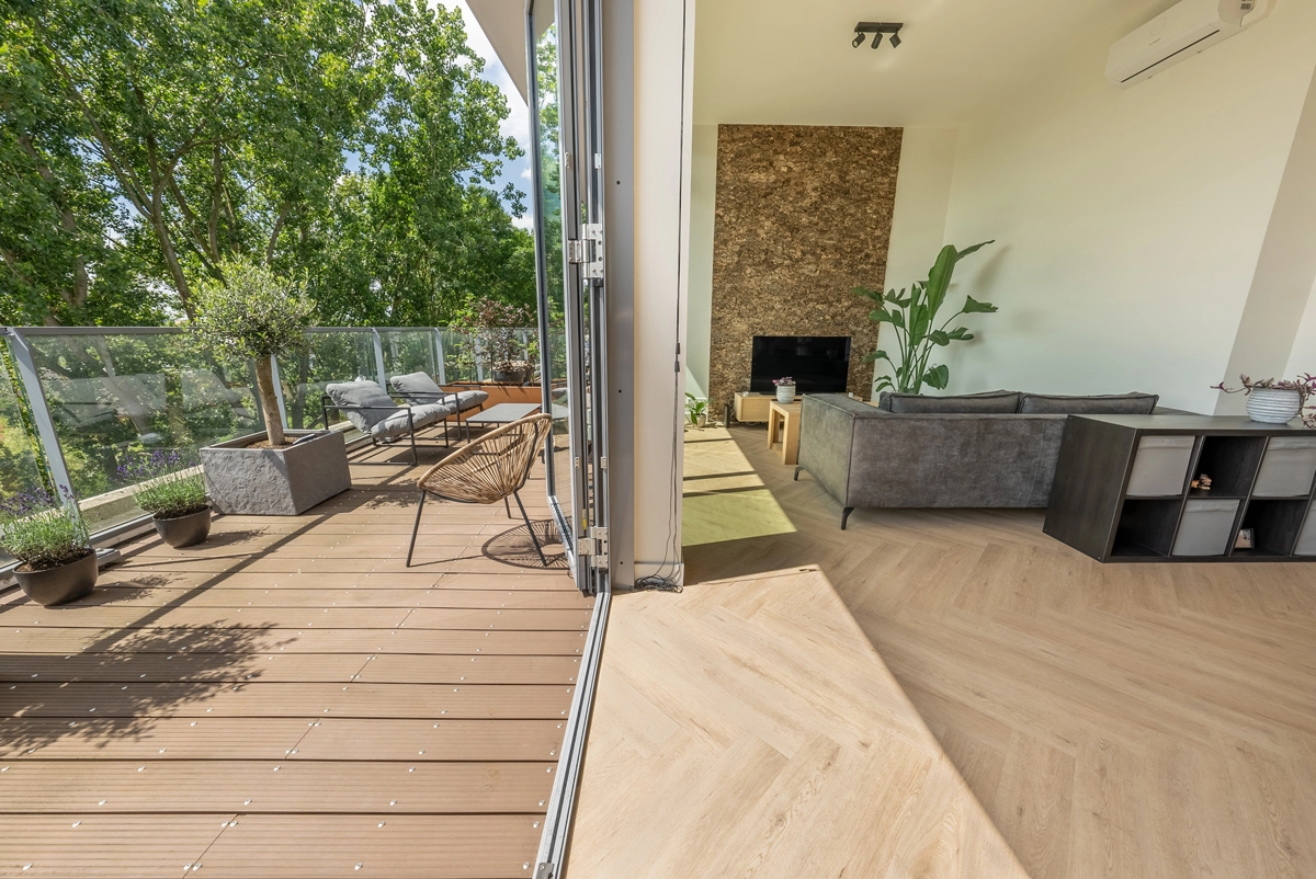 Dankzij de hoogwaardige PVC-constructie geniet je van de uitstraling van echt hout, maar dan met het onderhoudsgemak, de duurzaamheid en de slijtvastheid die je van PVC verwacht.