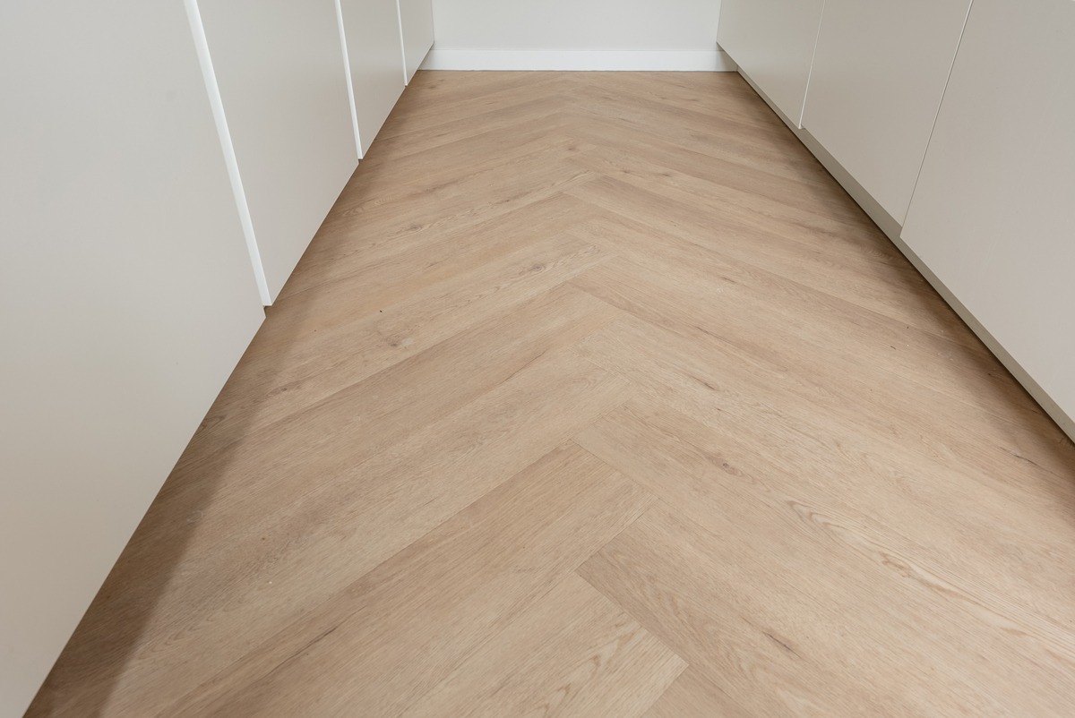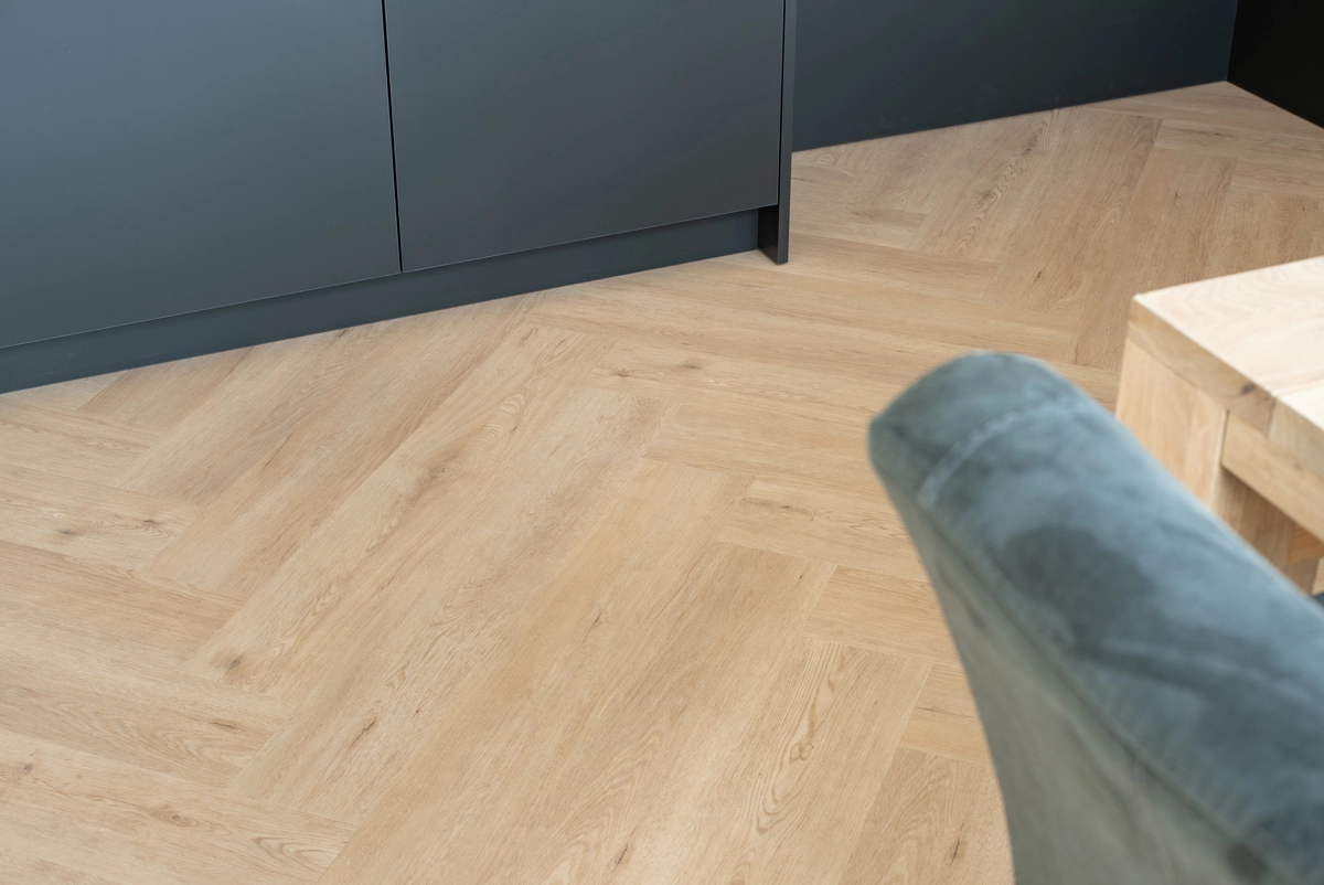 Deze visgraatvloer voelt prettig en warm aan onder de voeten en is eenvoudig schoon te houden. PVC is duurzaam en zeer geschikt voor intensief dagelijks gebruik — perfect voor woonkamers, hal, eetkamer of slaapkamer. De vloer blijft mooi, ook bij veel loopverkeer.