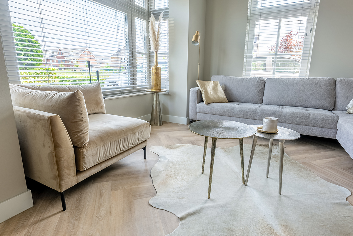 De lichte kleur laat zich makkelijk combineren met zachte tinten, natuurlijke materialen en strakke meubels. Zo creëer je een interieur dat rustig oogt en toch karakter heeft.